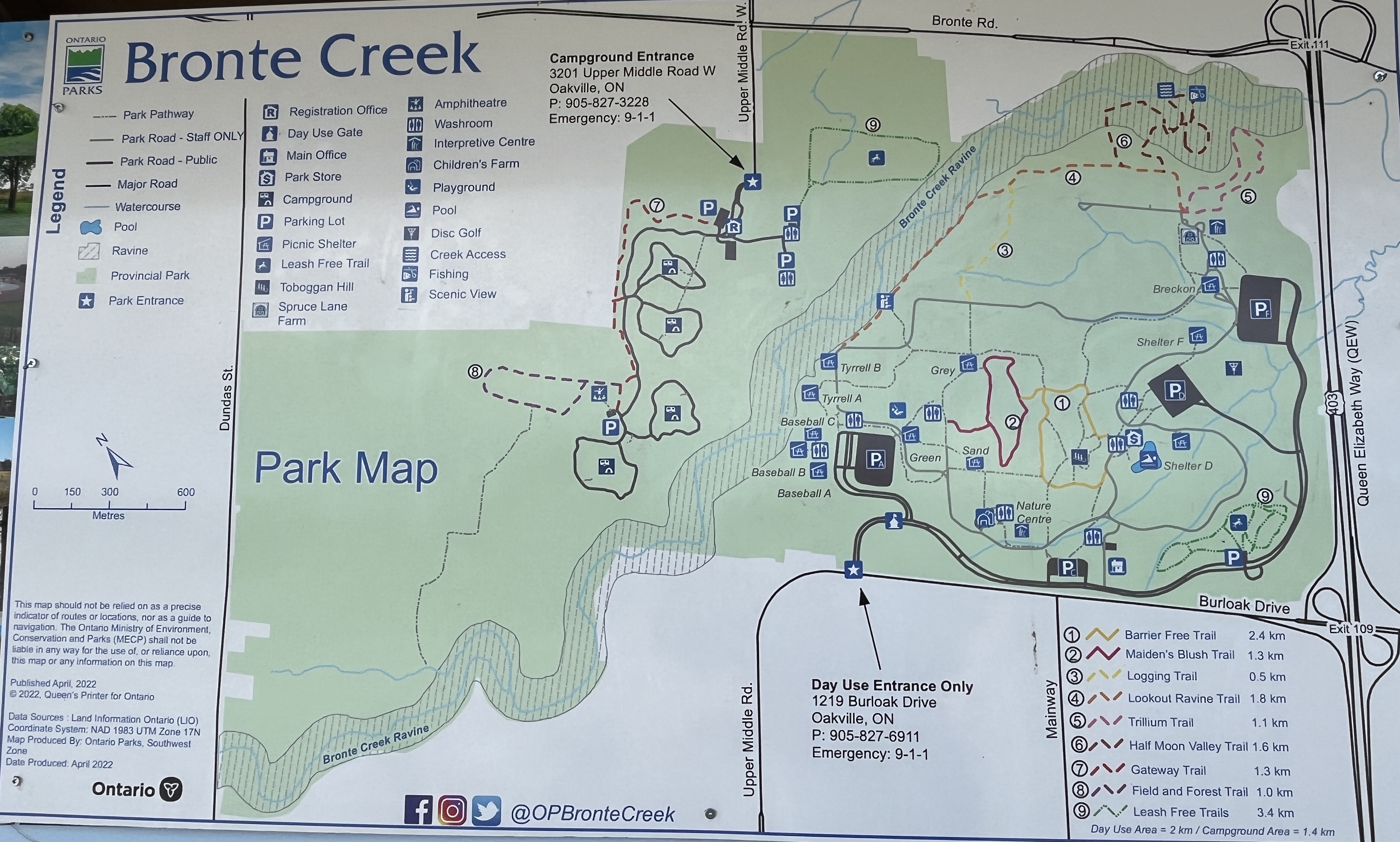 - Continue East. At the East end of the Bronte Creek Trail you can continue on the sidewalk of Old Burloak Dr, and a litle bit on Burloak Dr, and eventually reach the Bronte Creek Provincial park Day-Use Area.