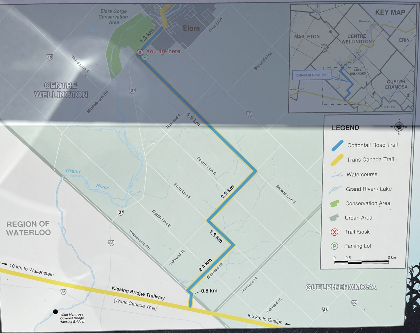 - Ride the loop clockwise. Rely on this loop map for the streets to turn into when you get to Elora. There will be limited signage on the trails and on the streets.