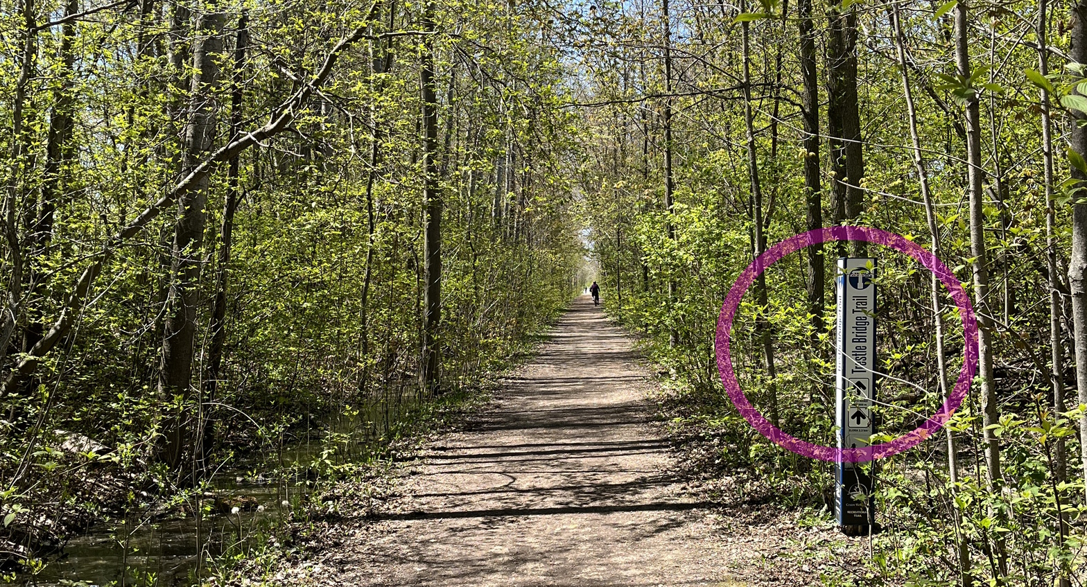 - From Bissell park, continue north on Mary St until Church Street. Follow Church Street eastward until you reach the trail.