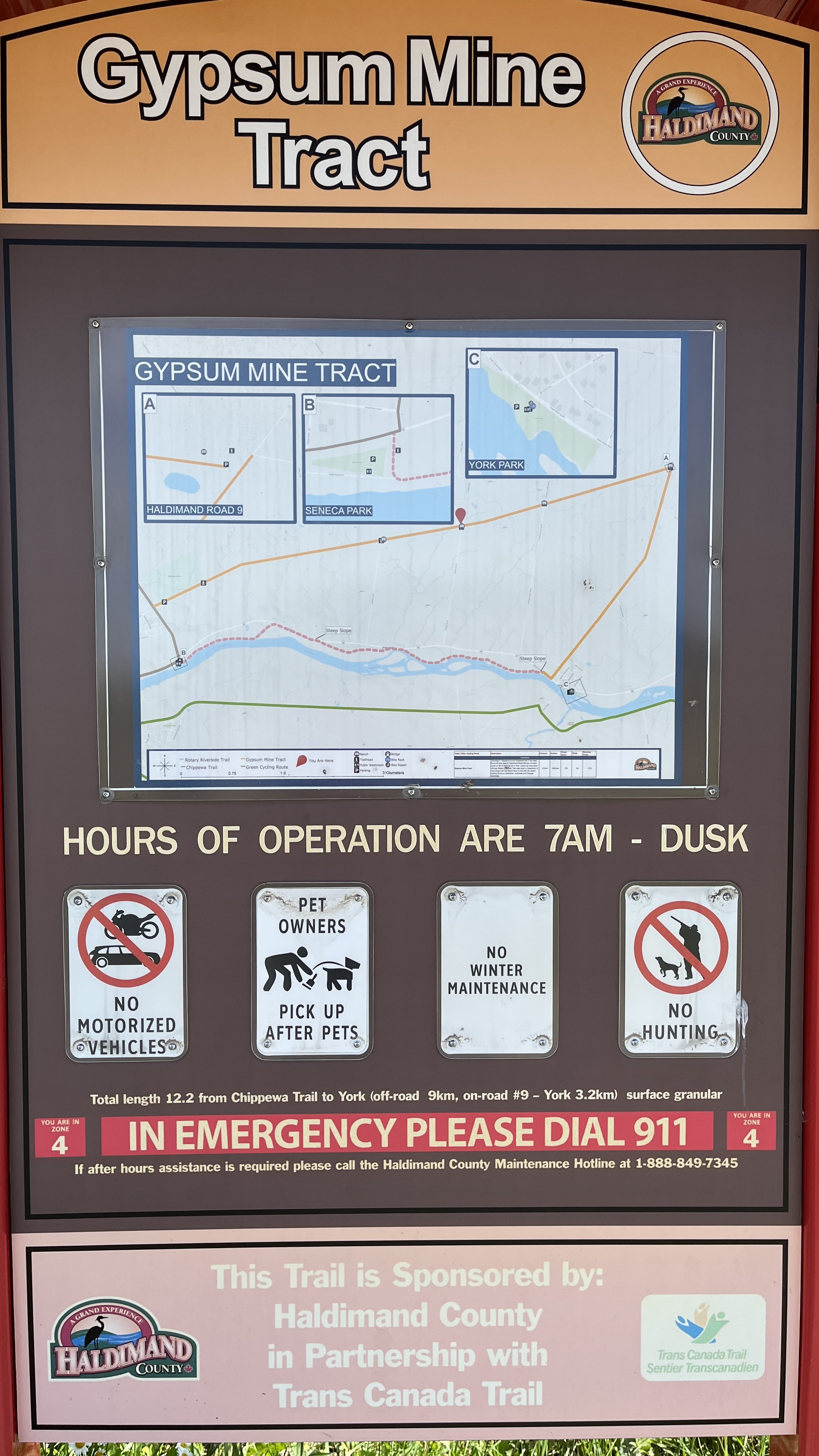 The Gypsum Mine Tract is a 7km (in one direction) multi-use trail for hiking and biking near a recently-developed (some still under construction) neighborhood near Caledonia, Ontario, Canada.